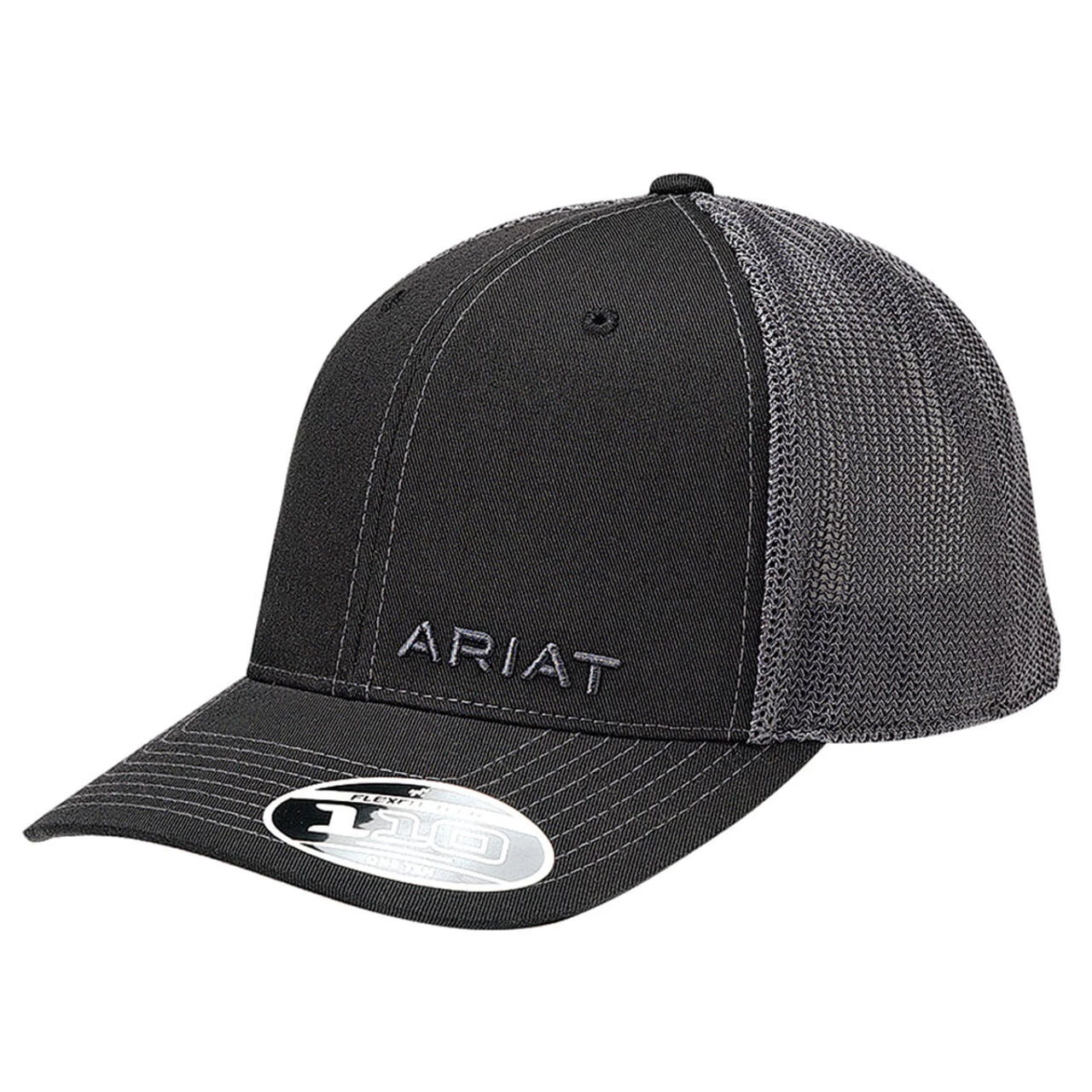 This Ariat menâs cap by M&F Western Products features Ariat text offset on brim with contrast stitching and a mesh snap back.