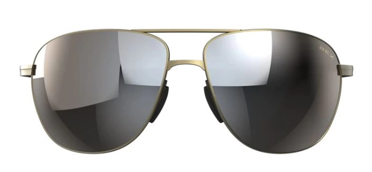 Brown lens tint (with silver flash).Military-grade stainless steel nose bridge, temples, and matte rubber temple (tips).Utilizes the Universatility System
