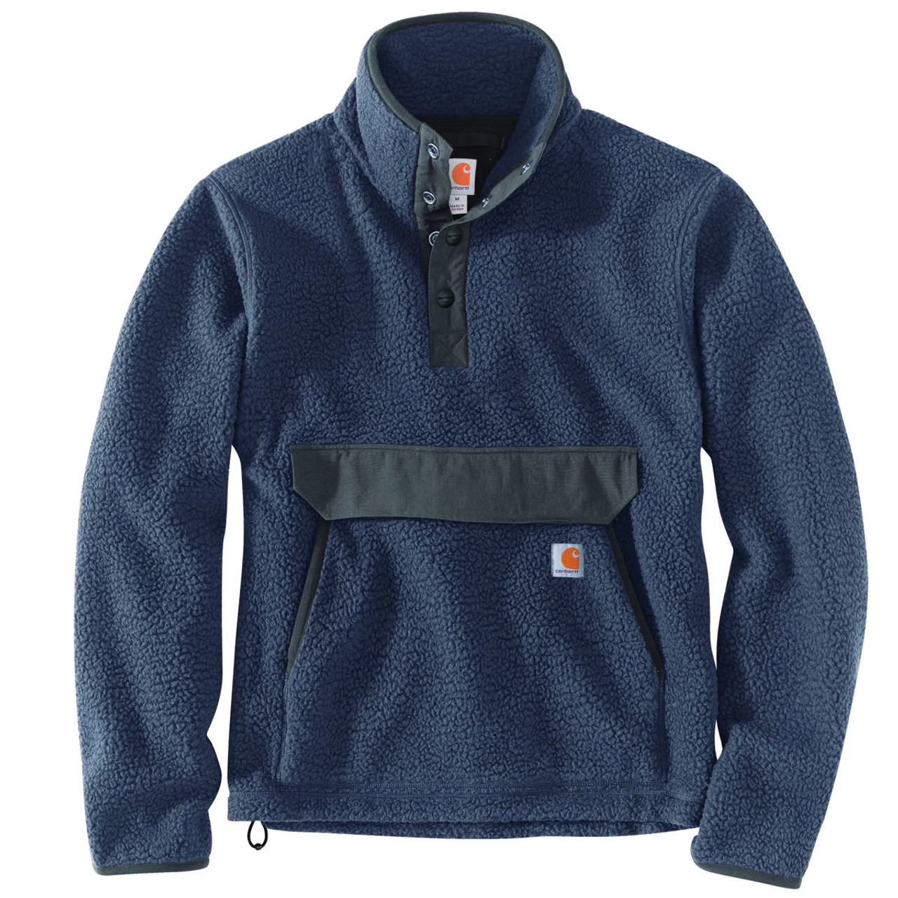 Carhartt’s version of the classic fleece pullover. This men’s warm layer works well Monday-Friday or for short hikes on the weekends. It has a relaxed fit, so it layers easily over tees and flannels. Adjust the drawcord at the hem to seal out the cold.