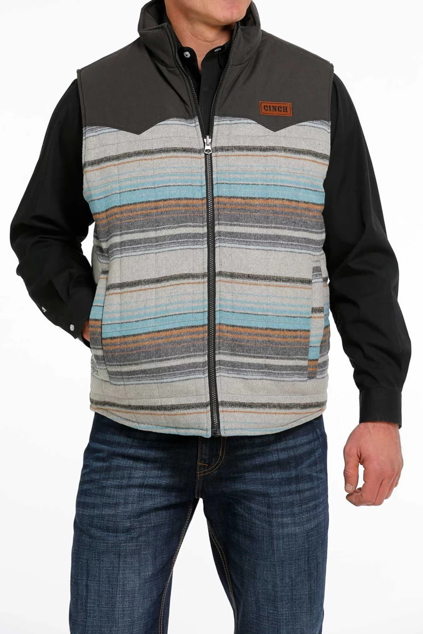 Cinch Mens Color Block Twill Wax Coated Zip Front Reversible Vest