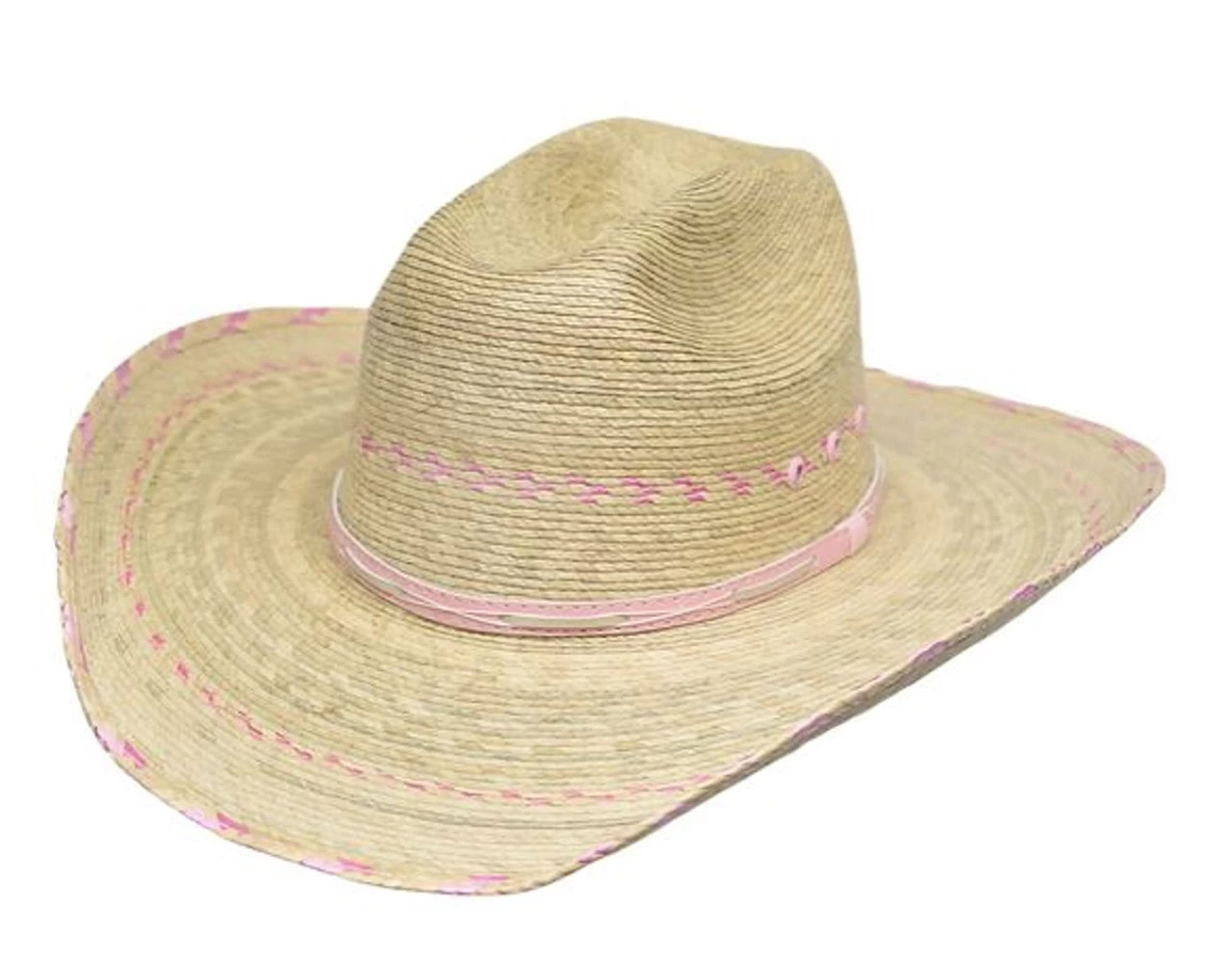 When your cowgirl in training sees this hat, expect her eyes to light up like a kid’s in a sweets shop. A classic design with bubblegum pink straw woven in, includes a pink hat band stitched with straw.