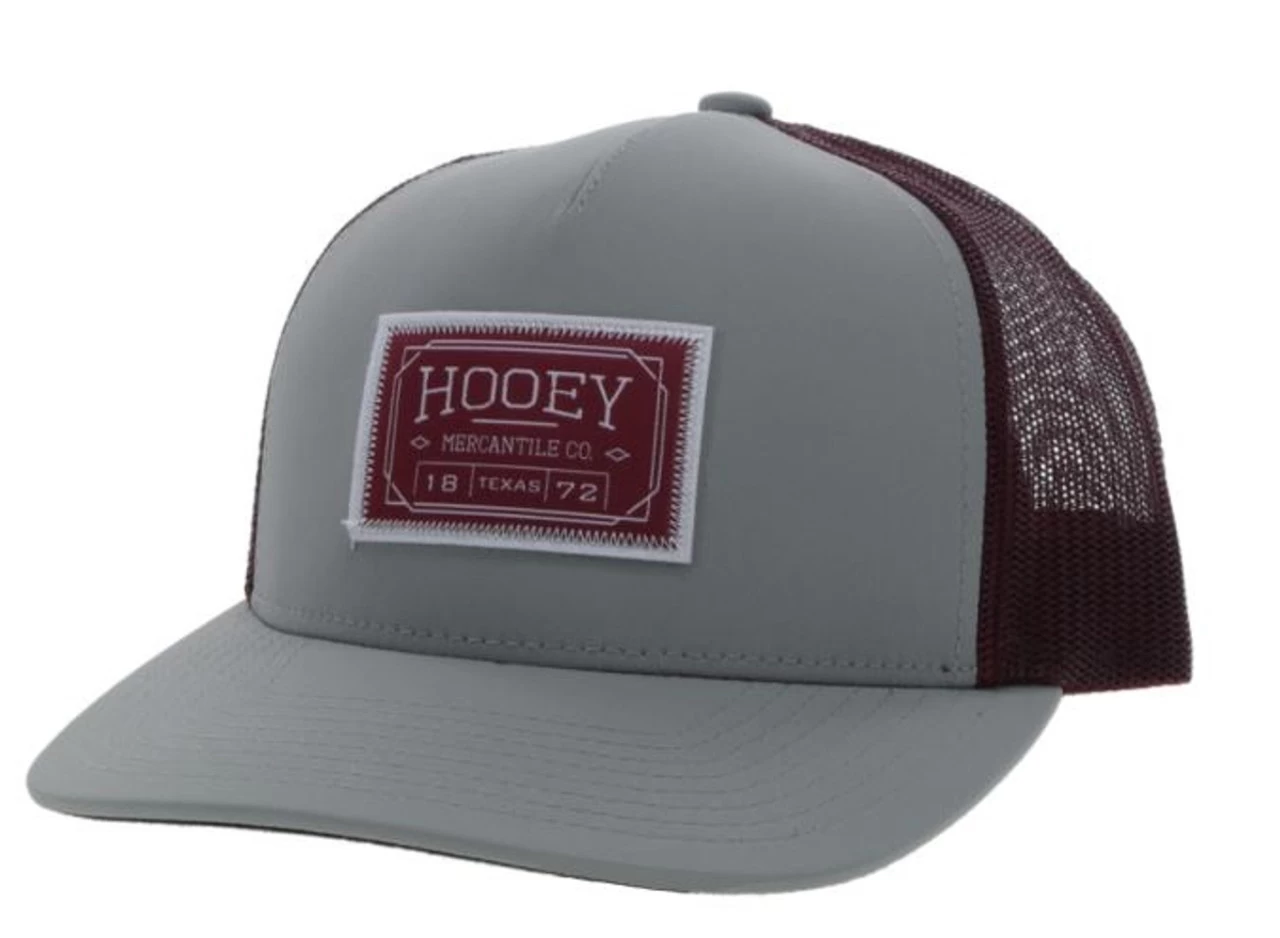 “Doc” Hooey Grey/Maroon 5-Panel Trucker w/Maroon & White Rectangle Patch- OSFA