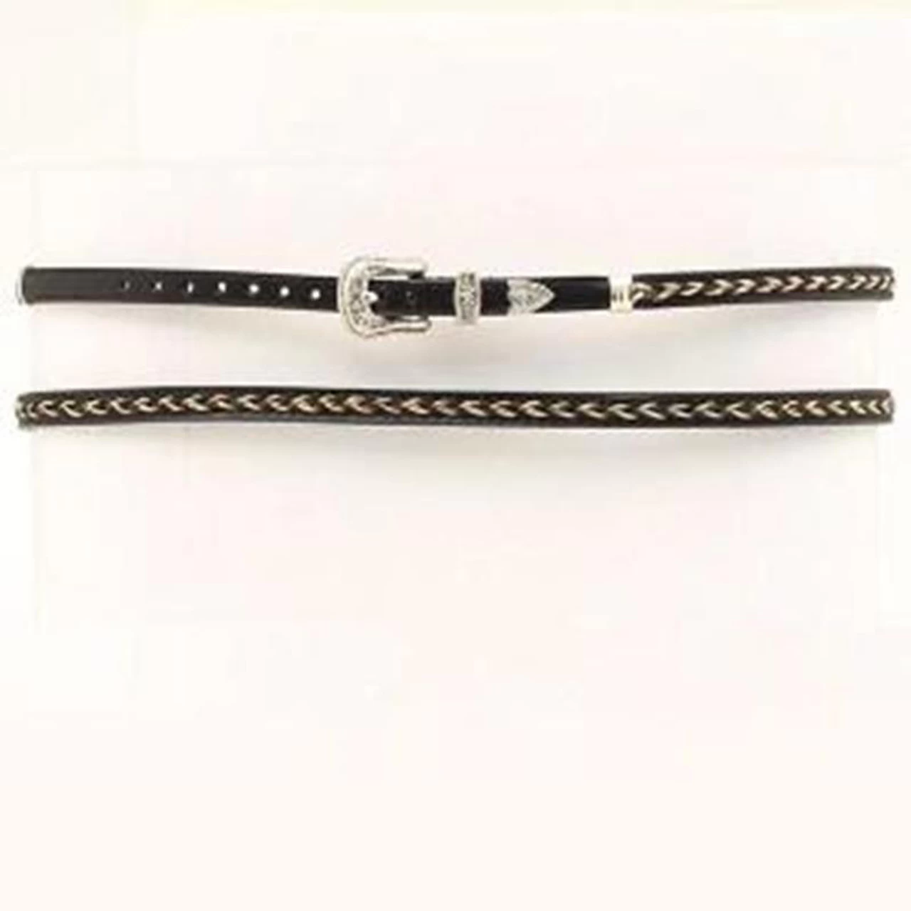 Black Leather 3 8 inch with Braided Horsehair Design, Available in Black, Adjustable – One size fits most, Includes 3 Piece Silver Plated Buckle Set.