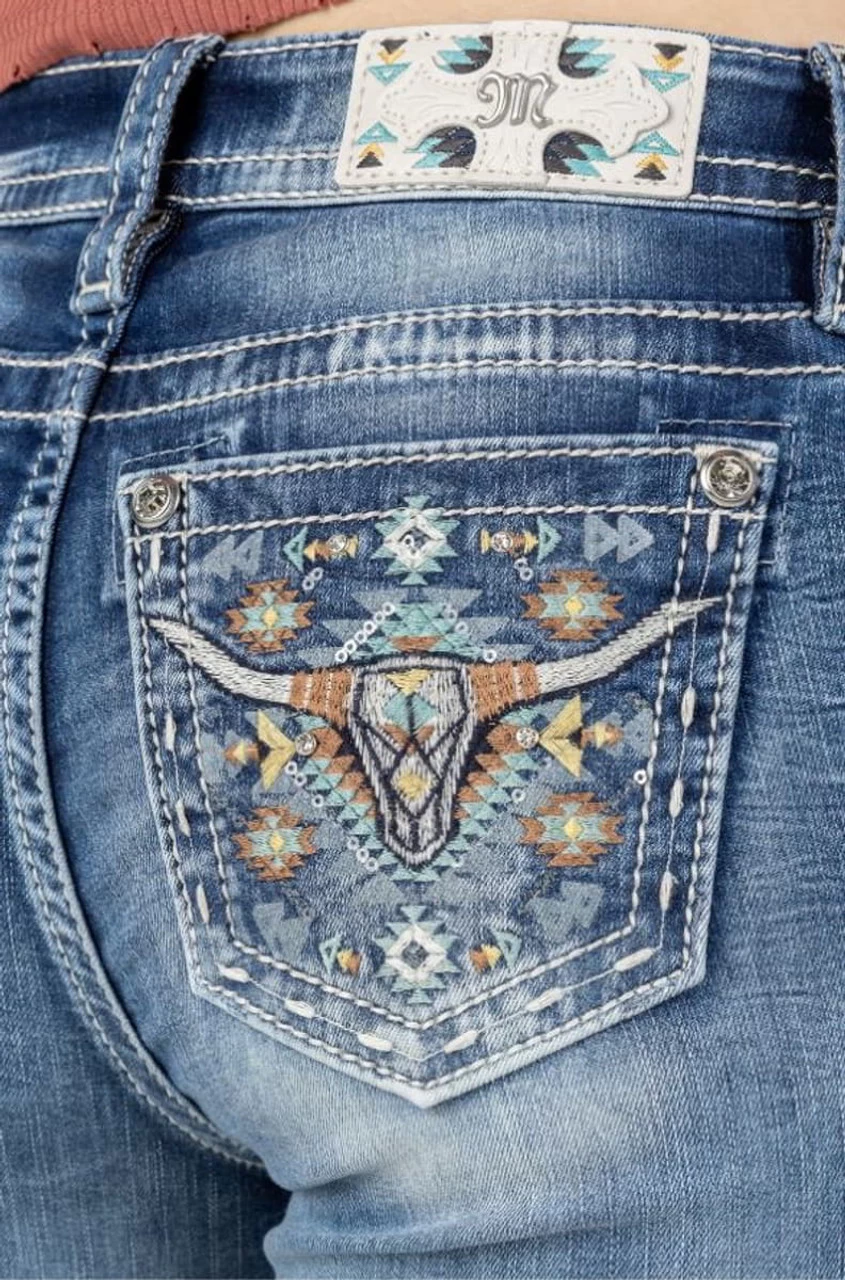 Miss Me Womens Turquoise Native Longhorn Bootcut Jean