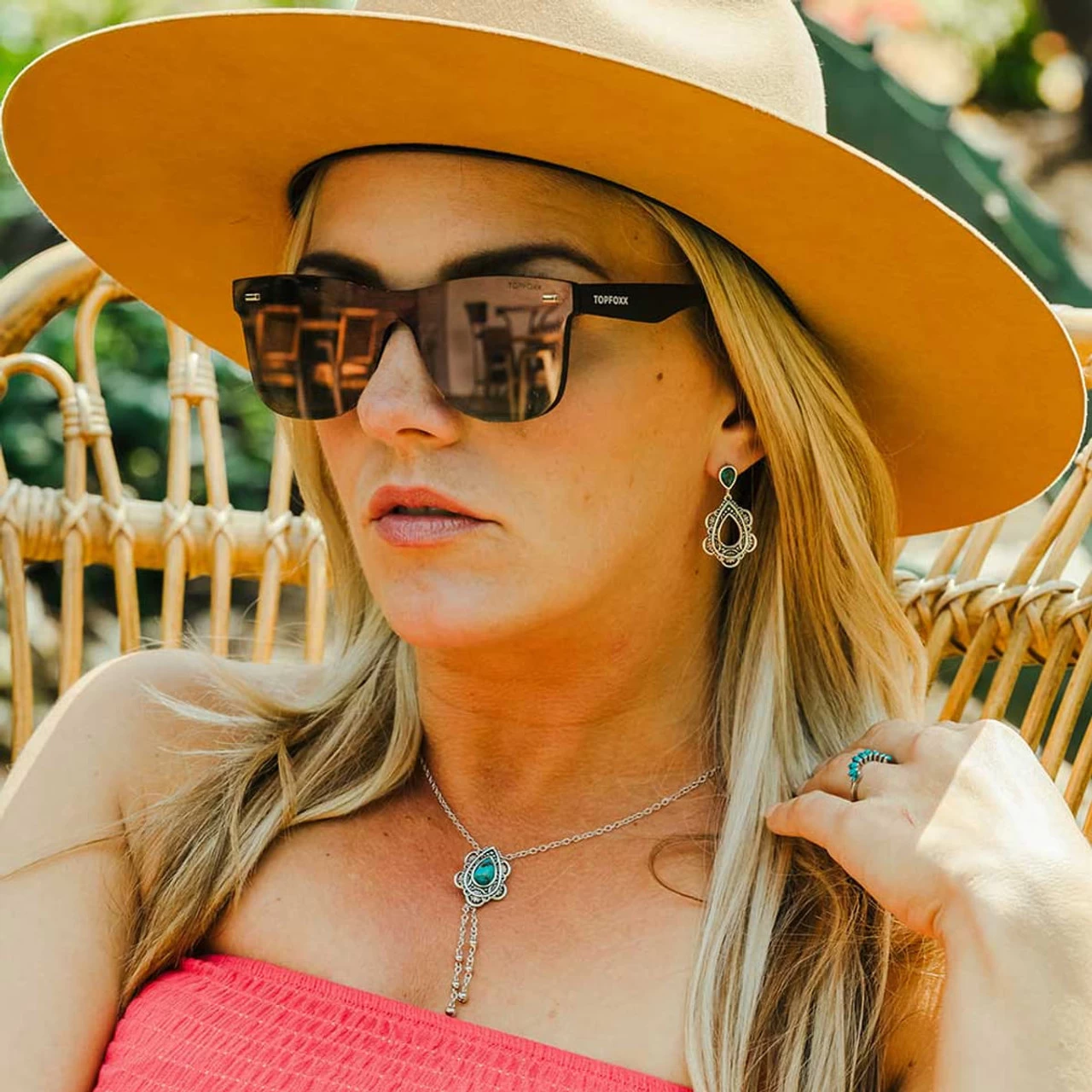 The Lady Guadalupe Dangle Stone Necklace adds spice to any jewelry collection! It hangs from a 16″ chain and is a pendant-style tear-drop shape. It holds a turquoise stone that is cradled by silver-toned filigree and scalloped designs with so much detail. Pair with the Lady Guadalupe Dangle Stone Earrings for a complete look!