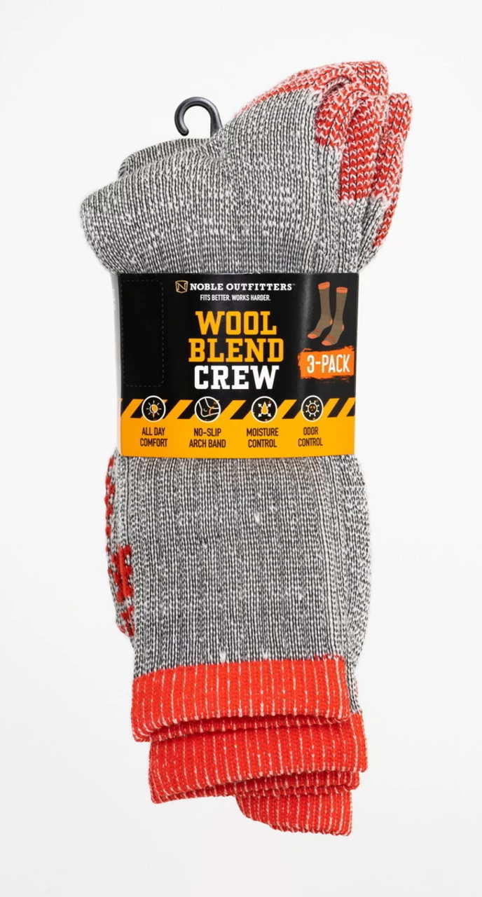 Noble Outfitters Mens Charcoal & Red Wool Crew Socks – 3 Pack