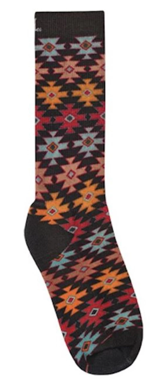 Red Dirt Hat Co Crew Cut Sock Great White Aztec Pattern Great White Aztec Print Ribbed Calf for Compression Comfort Black Seamless Toe and Heel 97% Polyester, 3% Spandex RDHC Logo Half Cushion 1 Pair Pack
