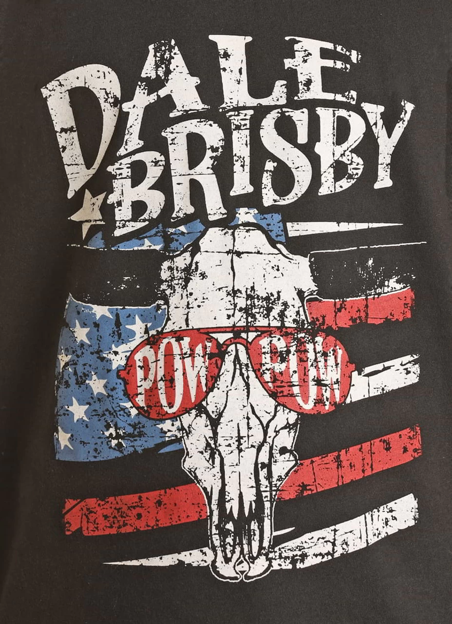 Rock & Roll Denim Boys Black Dale Brisby POW POW Steer With Sunglasses Americana Graphic Short Sleeve T-Shirt