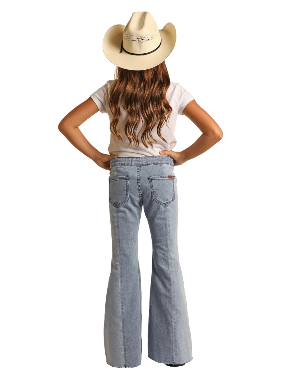 Rock & Roll Denim Girls Two Tone Light Wash Bell Bottom Jean