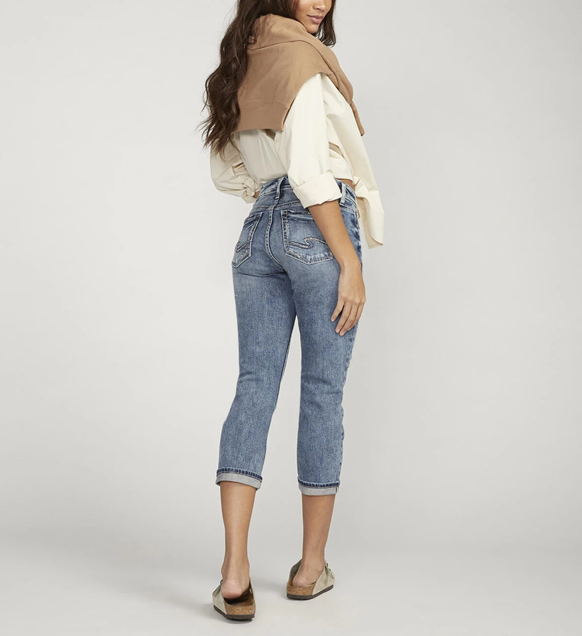 Elyse is the perfect everyday comfort fit. It features a classic mid rise and eased waistband that delivers comfort in the midsection and eliminates muffin top. Plus, the extra room in the hip and thigh hugs curves perfectly. For the most comfort possible, Elyse has you covered. This denim features the perfect mix of vintage character and comfort stretch, thanks to T400Â that provides excellent recovery and shaping qualities. Its authentic shade was achieved by a traditional Japanese rope-dyeing method and indigo from DyStar, one of the most sustainable liquid indigos. 5-pocket styling with a zip fly and button closure Capris with a medium indigo wash 9.25” mid rise 13.5” leg opening 23.5” inseam Fiber content: 97% Cotton 2% Polyester 1% Elastane Fabric type: Mid Flex