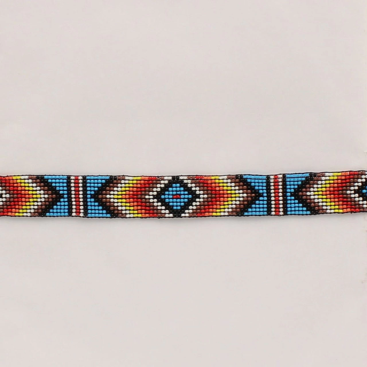Dress up your favorite hat with this Twister beaded hatband by M&F Western Products. Stretch to fit in a southwestern pattern of multi colored beads.