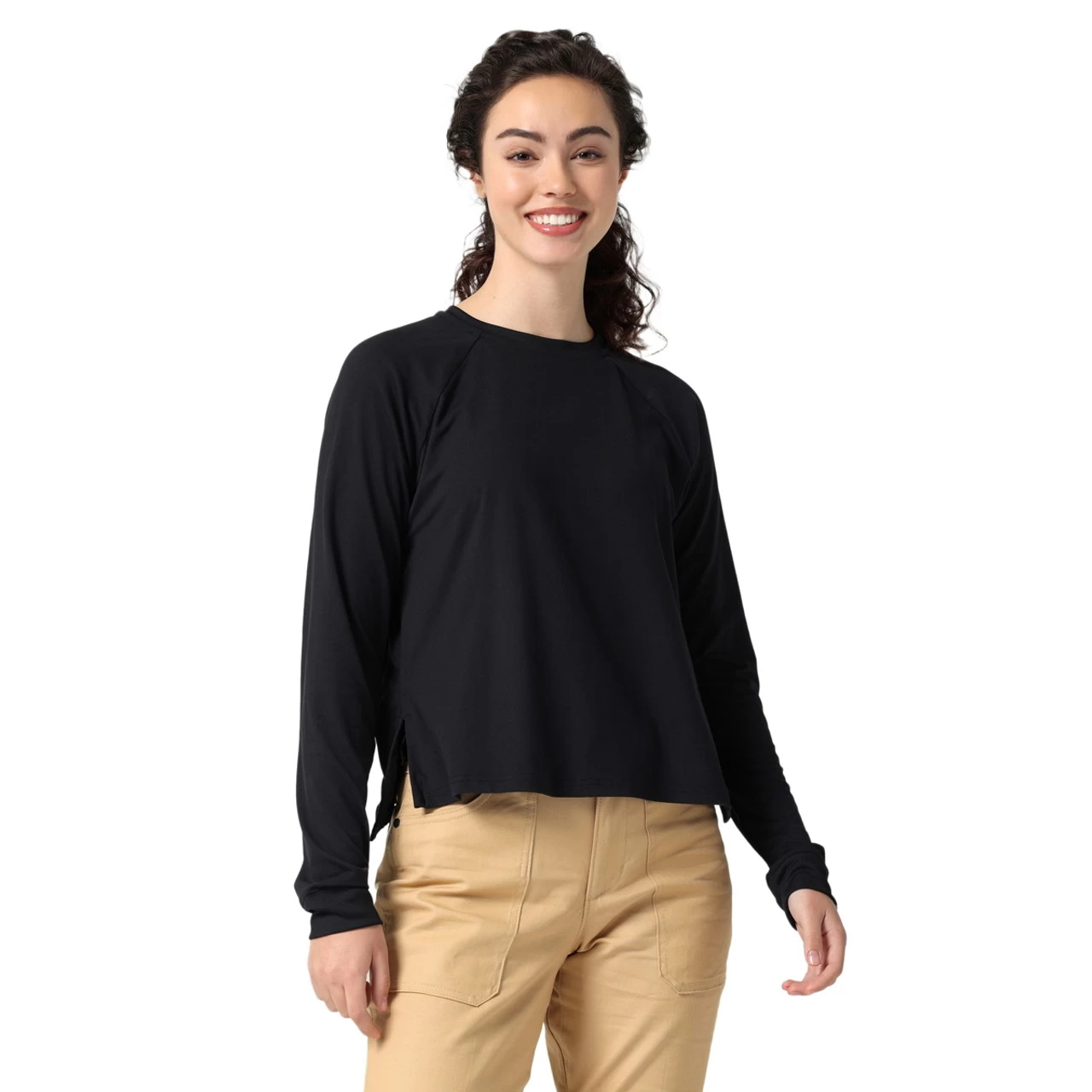 Stylish enough for a night out yet practical enough for a night in at the campsite, the ATG by Wrangler⢠women’s performance raglan tee has it all. This versatile base layer’s crafted from a sustainable blend of recycled materials and just a little stretch to keep you moving in comfort. It comes with UPF 40 to shield you from the sun and a moisture-wicking finish to keep you dry in the elements. It also features a card pocket at the back of the neck for hands-free convenience as well as double-needle stitching at the neck and hem for lasting durability. Wear it on all the adventures to come with a pair of joggers, cargos, or leggings.