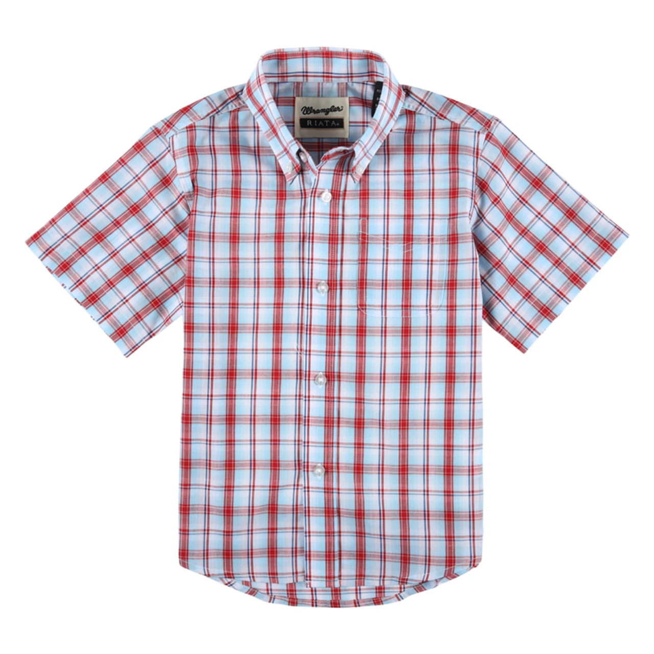 When you’re a boy on the move, you can’t waste time dealing with wrinkles. Well, the Wrangler Riata short-sleeve plaid has your back whenever you need to get dressed in a flash. This versatile short-sleeve shirt comes fully equipped with all the details you need to get through any busy day with ease. It features a front button-through chest pocket, a straight back yoke with center pleat, and a pen or pencil slot. Made with easy care fabric, this classic plaid shirt is treated with a wrinkle-resistant finish to keep that fresh-pressed look you can usually only get from ironing. Dressed up or down, this short-sleeve plaid has you covered for any occasion. Short Sleeve Length Front Closure: Buttons Front Pockets: One with button-through Back: Straight Back Yoke with Pleat Button Down Collar