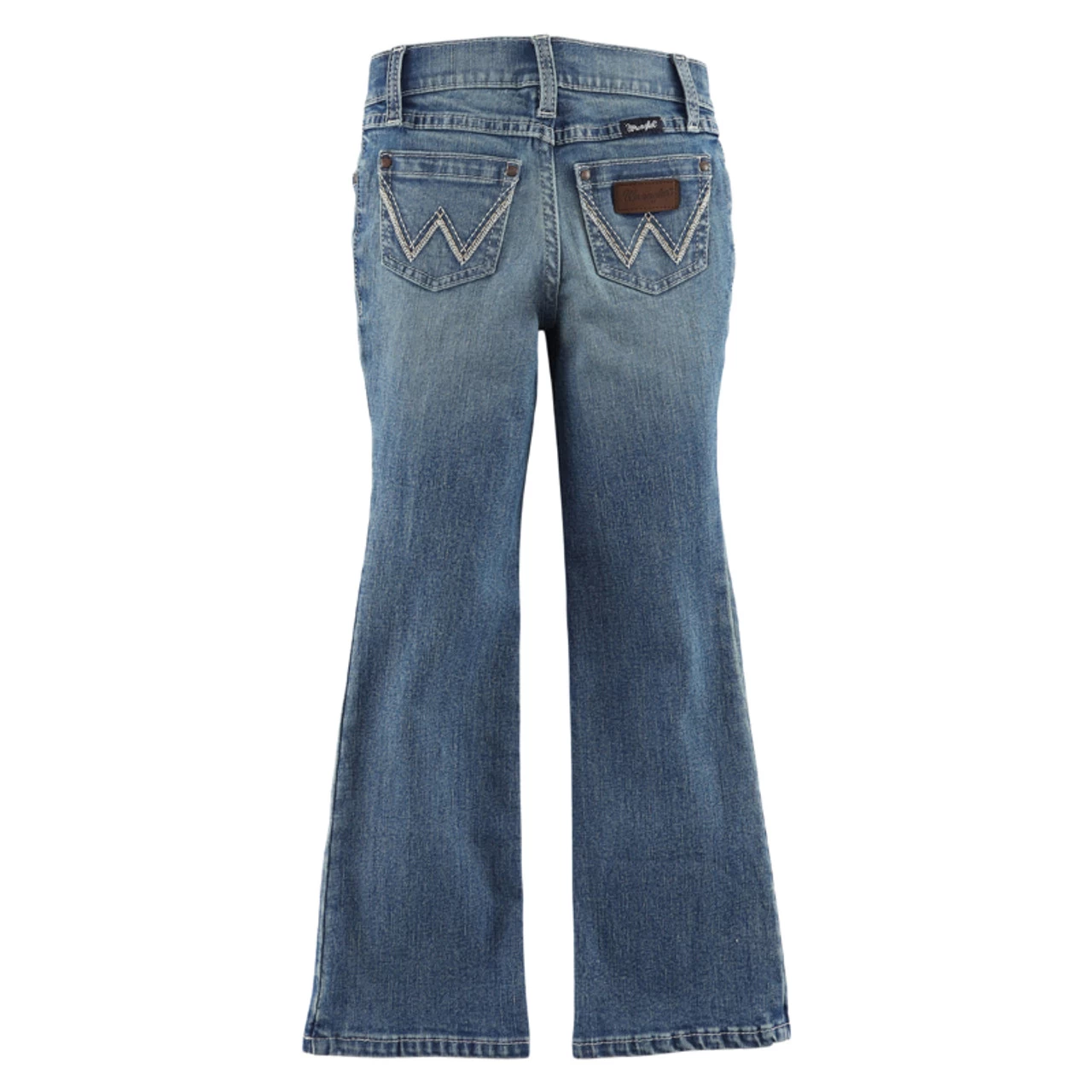 Comfortable, modern style straight from our Wrangler Premium Patch collection to your little girl. Fit: Regular Rise: Low Leg: Bootcut Front Closure: Zip-Fly with button closure Back Pockets: Two back pockets with no closure