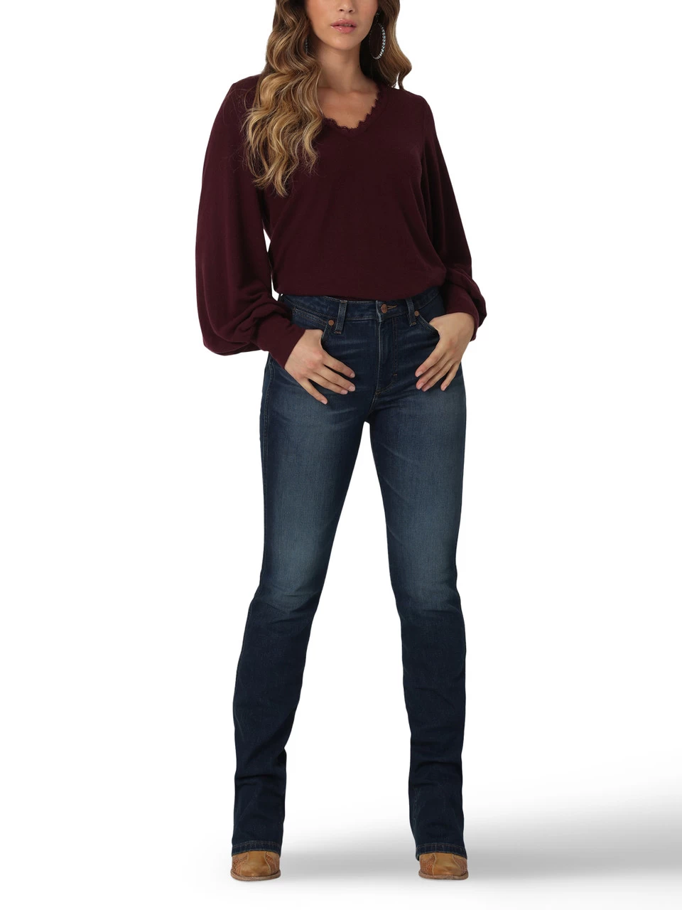Wrangler Ladies Long Sleeve Purple Ballon Sleeve Top