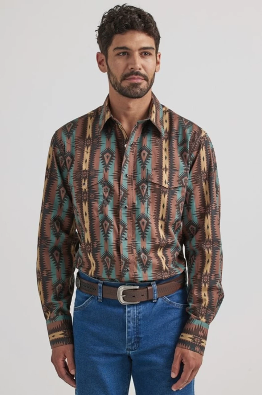 Wrangler Mens Checotah Brown Multi Long Sleeve Shirt