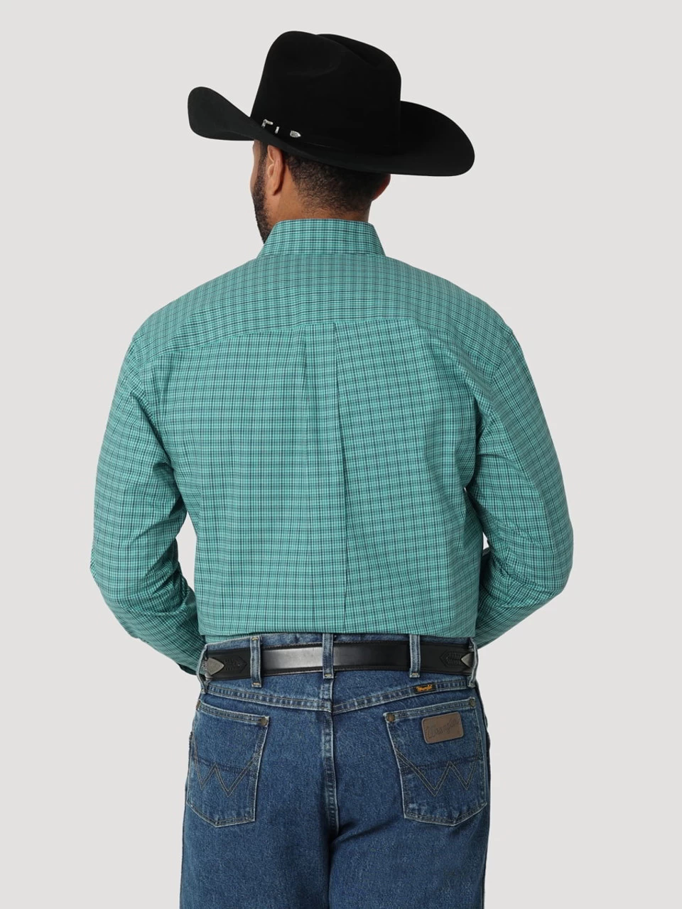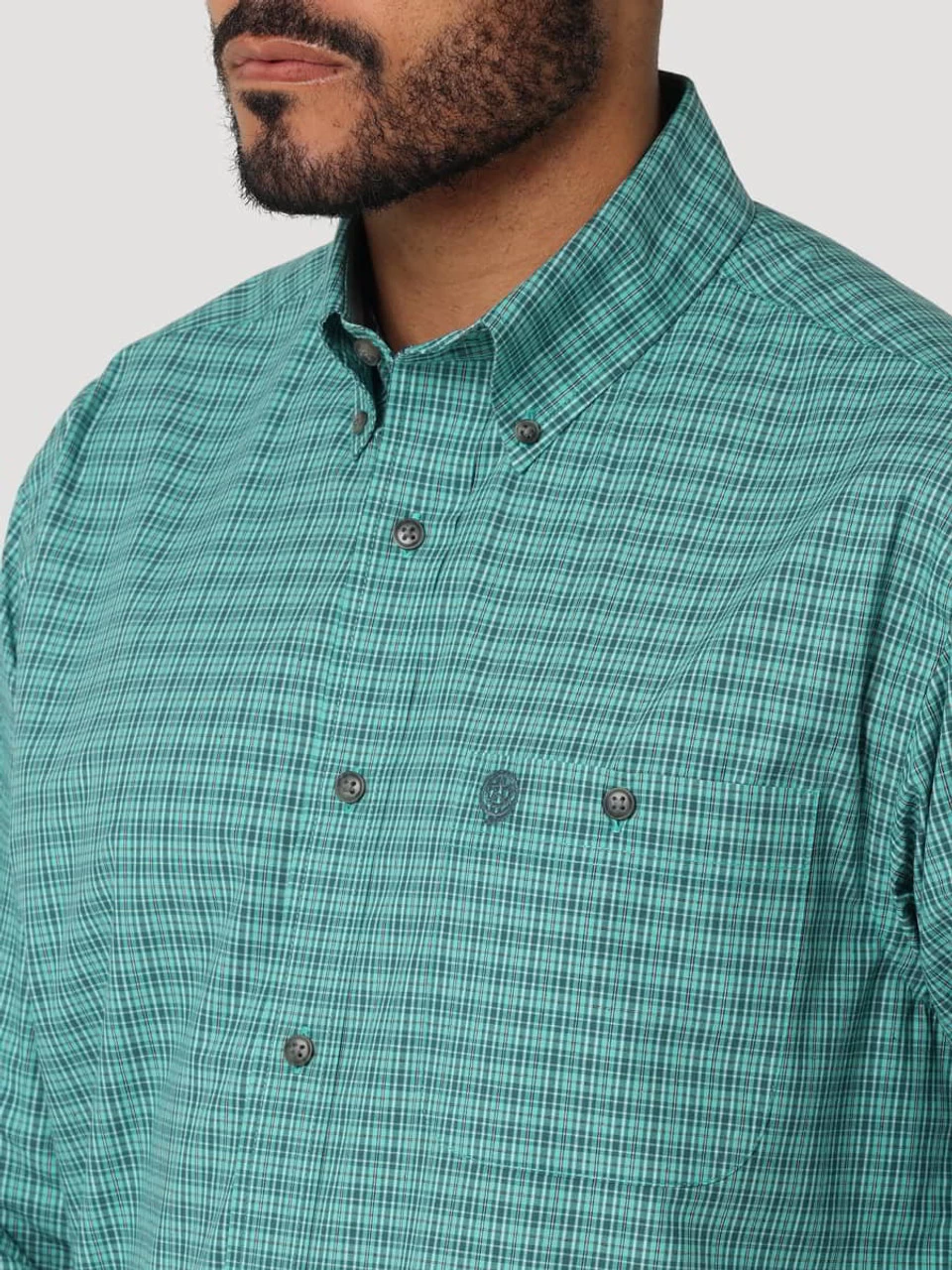 Wrangler Mens Green Small Plaid George Strait One Pocket Long Sleeve Western Shirt