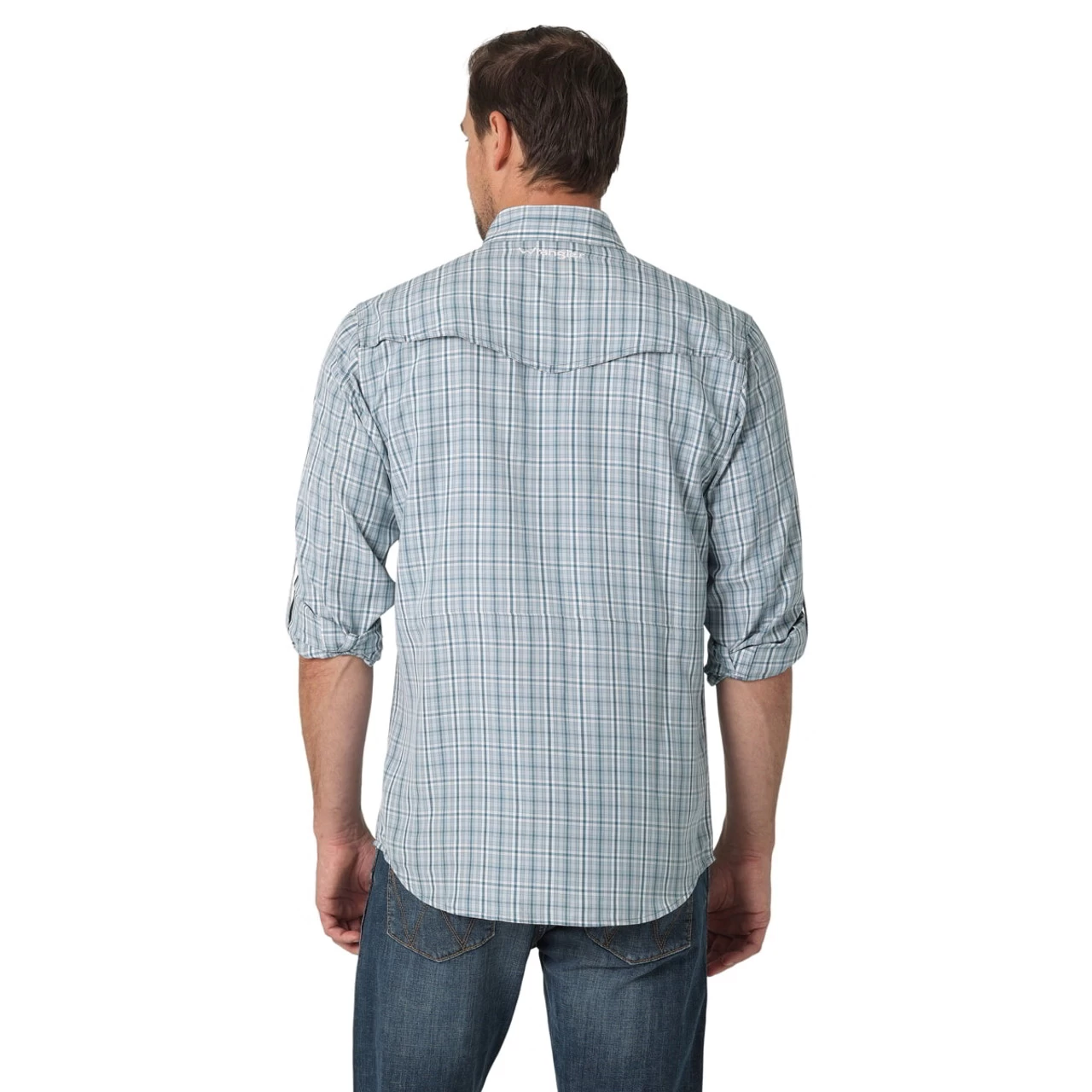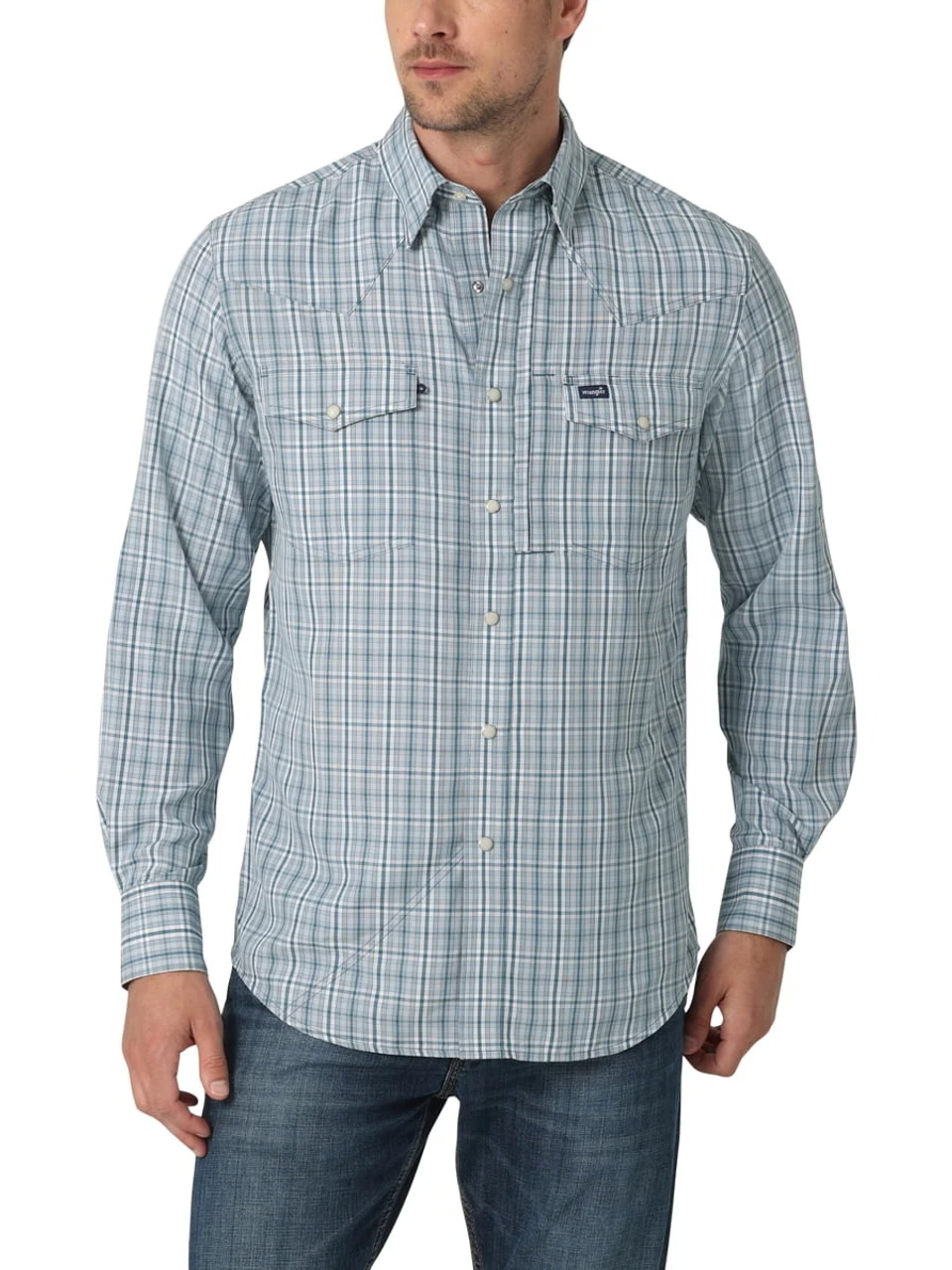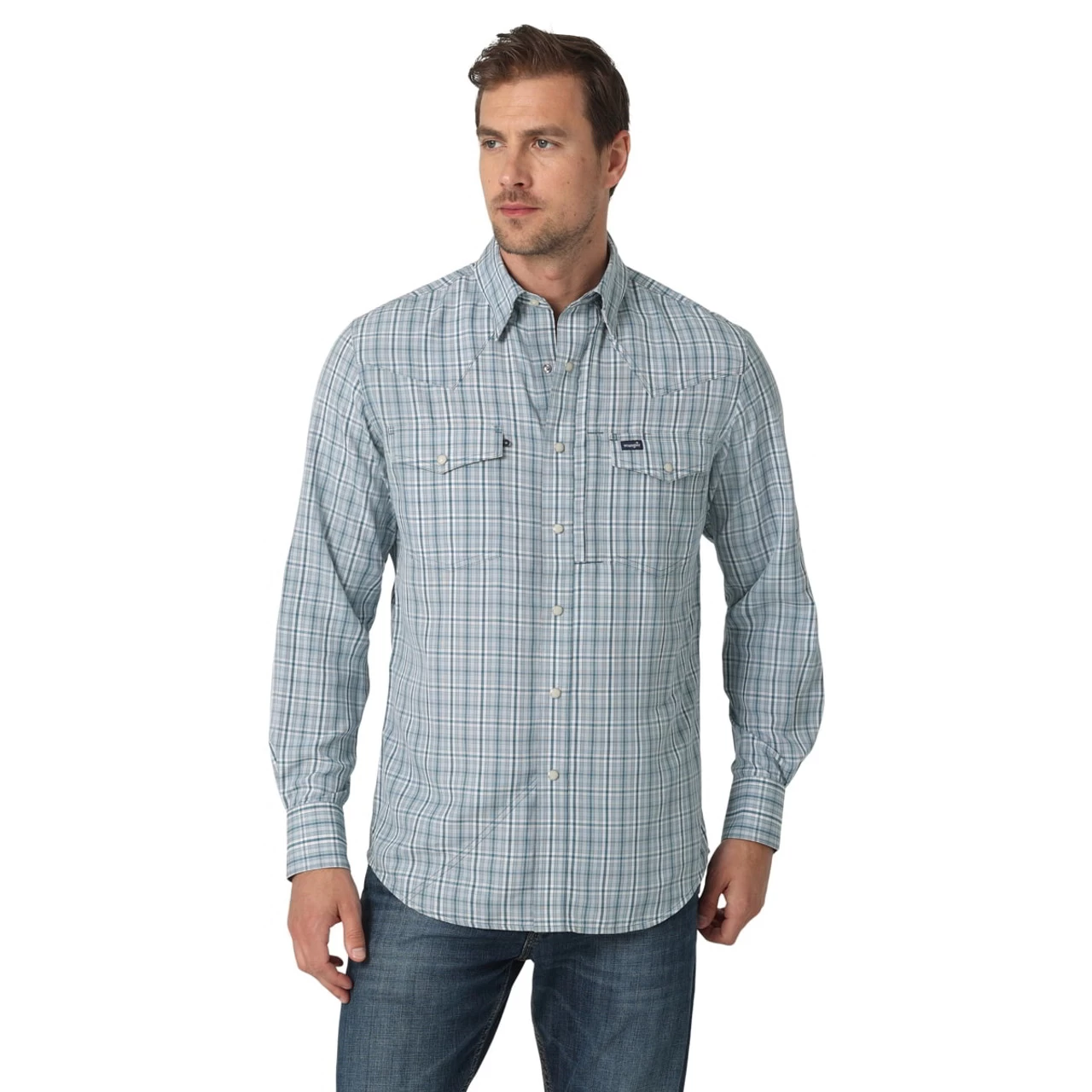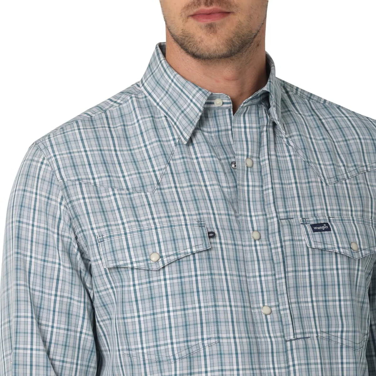 Wrangler Mens Performance Snap Long Sleeve Plaid Shirt In Teal Plaid
