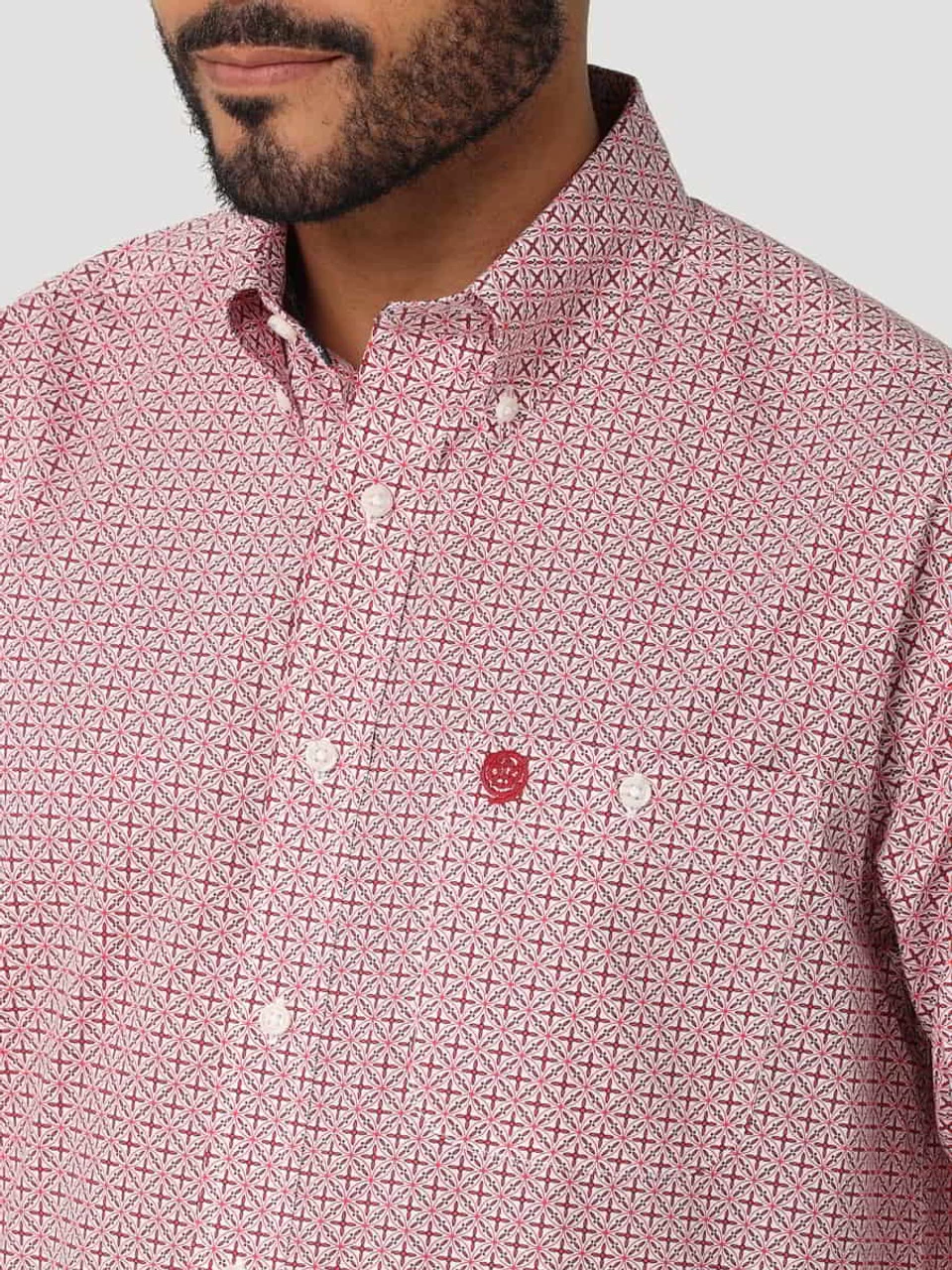 Wrangler Mens Red Geo Print George Strait One Pocket Long Sleeve Western Shirt