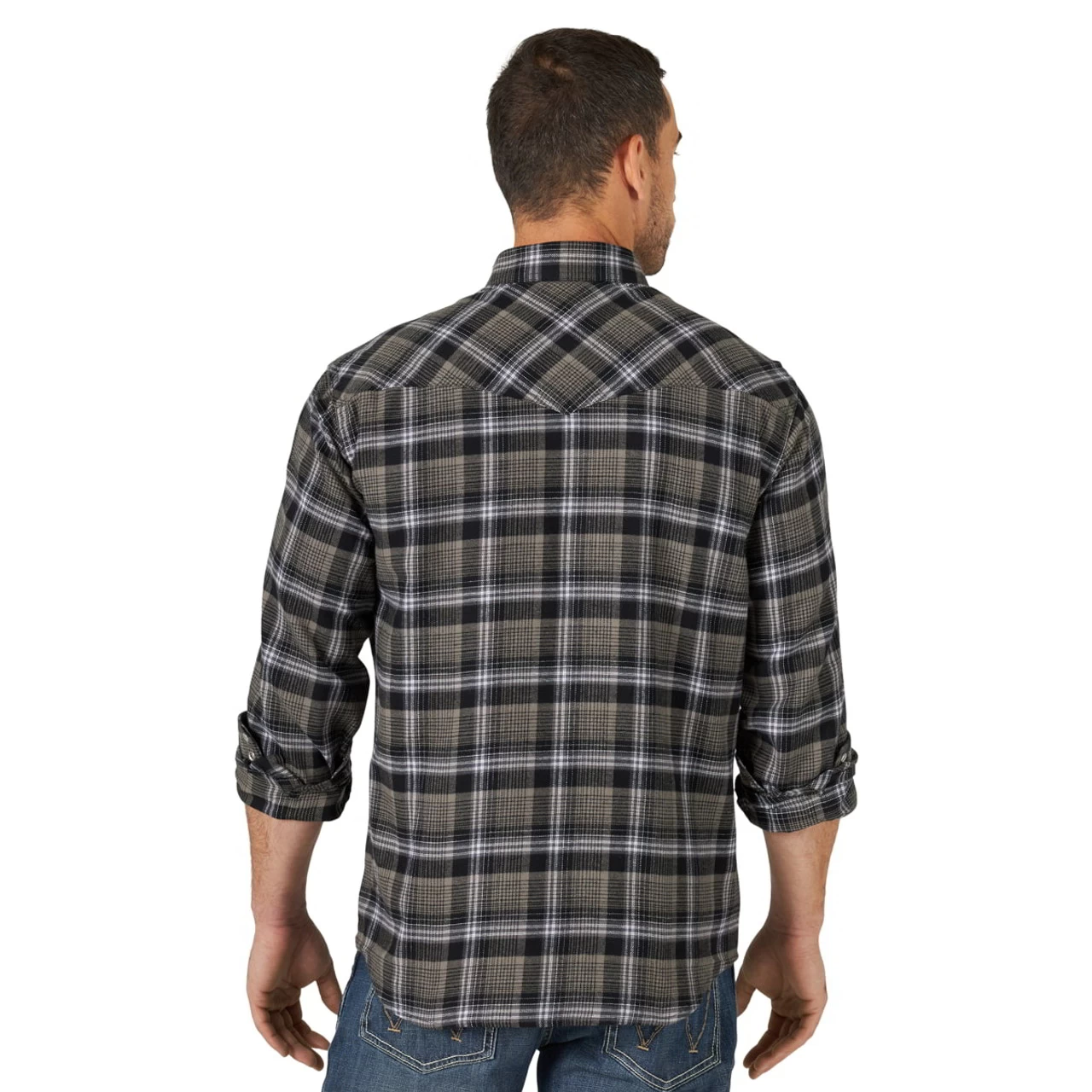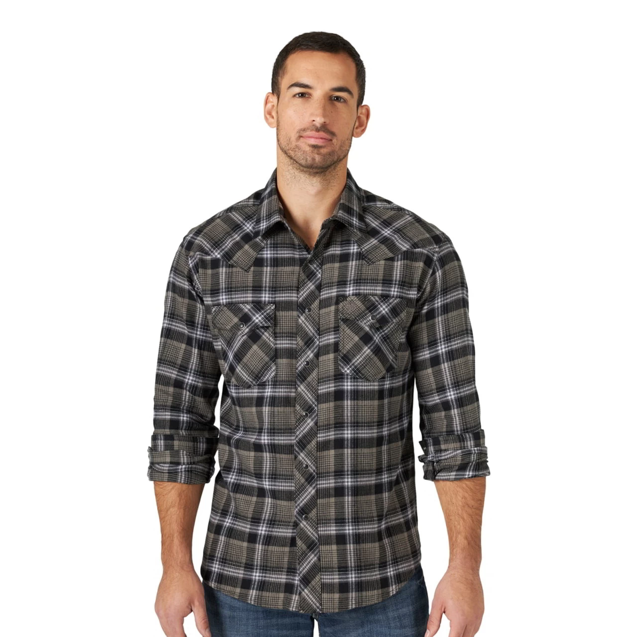 Wrangler Retro Mens Black Plaid Long Sleeve Flannel Shirt