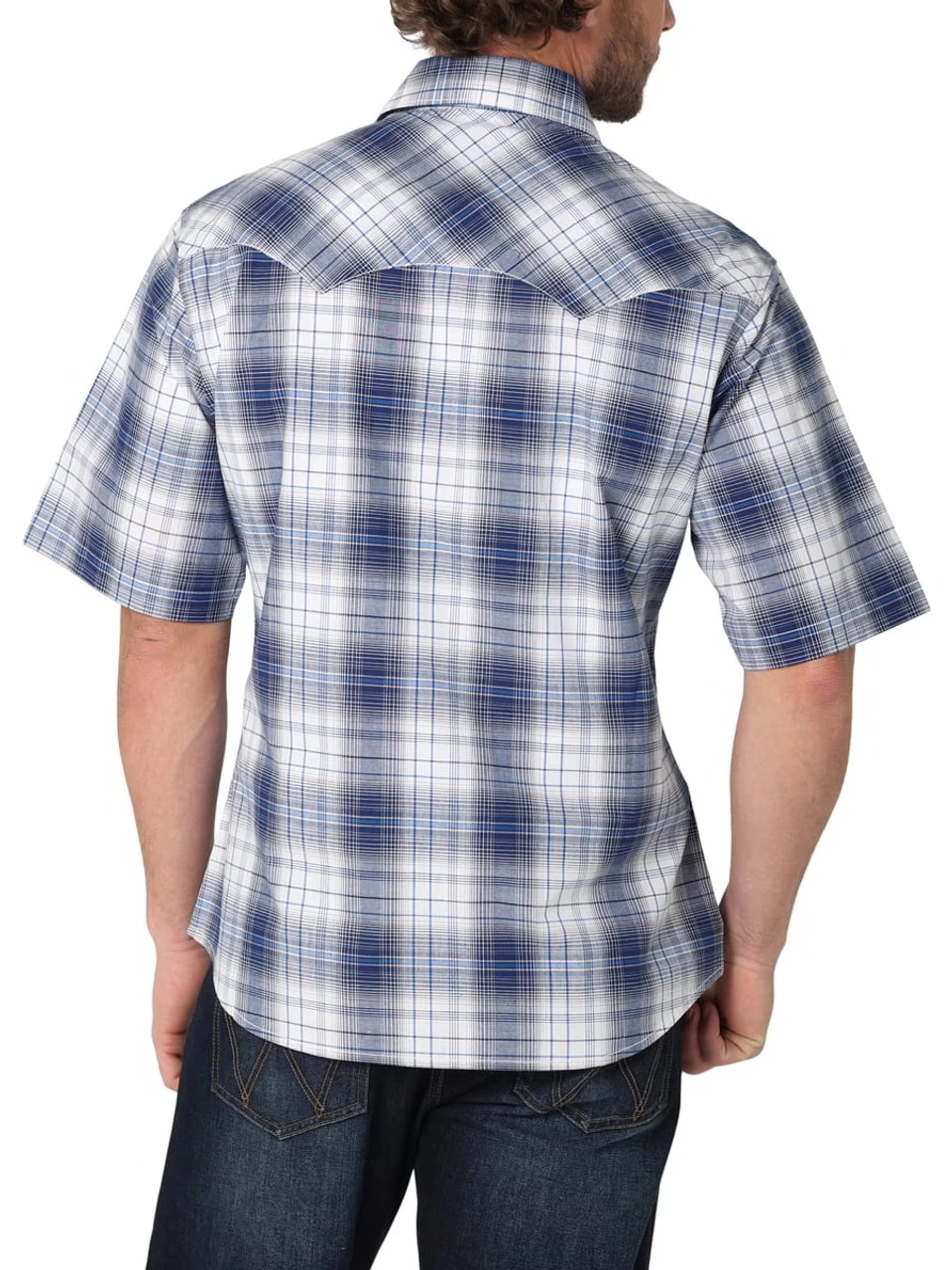 Wrangler Retro Mens Blue & White Plaid Modern Fit Short Sleeve Shirt