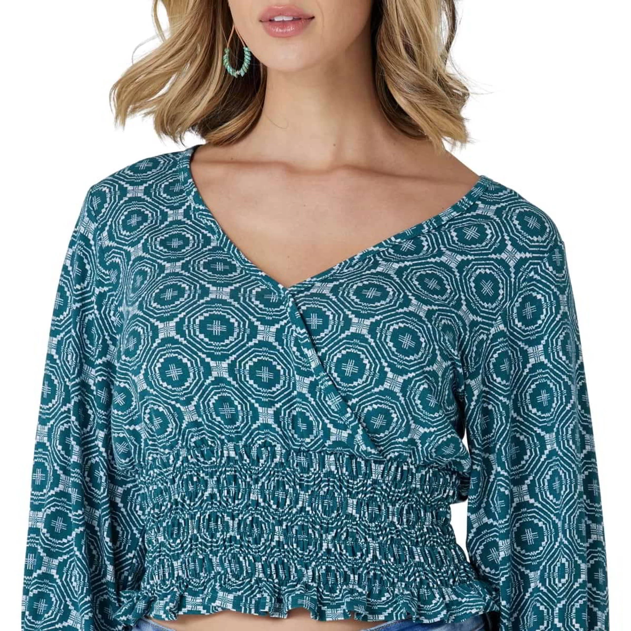 Wrangler Womens Bursts Smocked Crop Blouse In Dark Teal