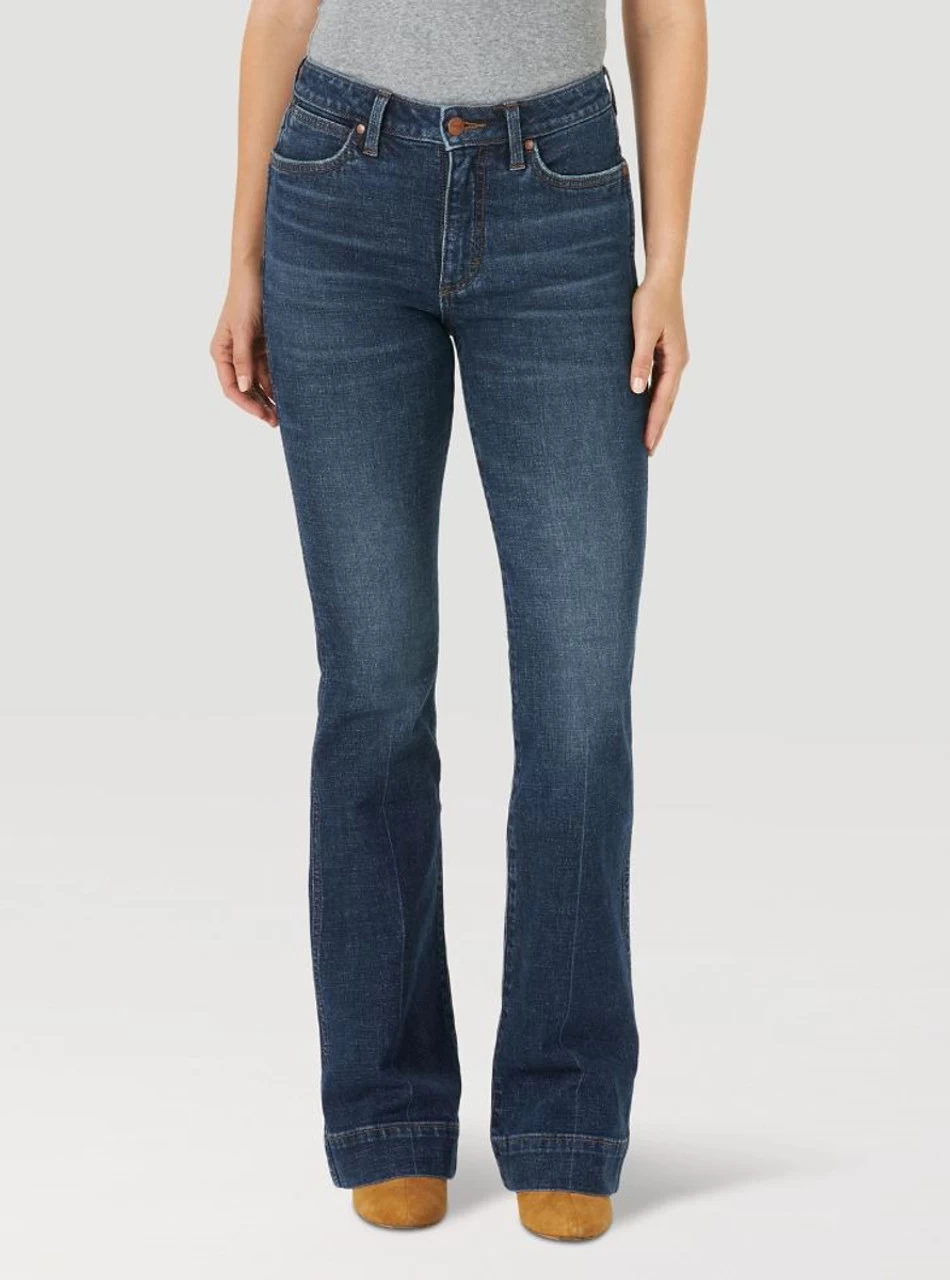 Your favorite Western jeans are going green. As part of the Wrangler Retro Green Jean assortment, our women’s trouser jeans are reimagined to combine all the Western style you love with enhanced sustainability features you can be proud of. Inspired by our love of the land, the Green Jean is designed using a blend of recycled cotton and made exclusively in factories that have met some of the highest standards for prioritizing employee health and safety. Style couldn’t be missing from this Western classicâthat’s why the Green Jean trouser features the same curve-flattering high rise and contoured waist of the originals. The style offers a close fit through the thigh before releasing at the knee to a subtle, wide leg opening that fits perfectly around your favorite cowgirl boots and Western-inspired heels.